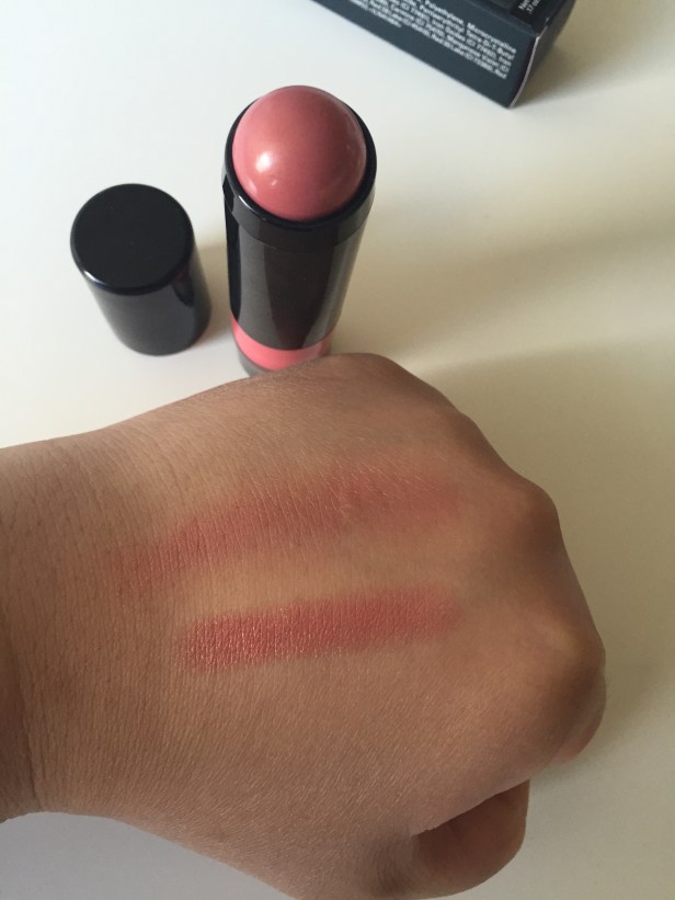 Det är ett rouge i stift form. Som man även kan använda på läpparna.
