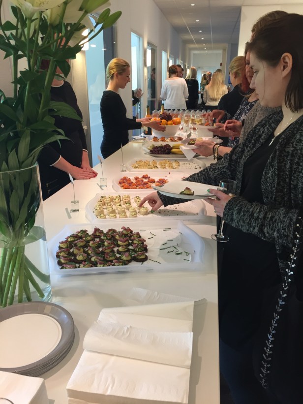 Väl framme mötts vi av Annika och hela det fantastiska teamet som ordnade detta. Det bjöds snittar och bubbel.