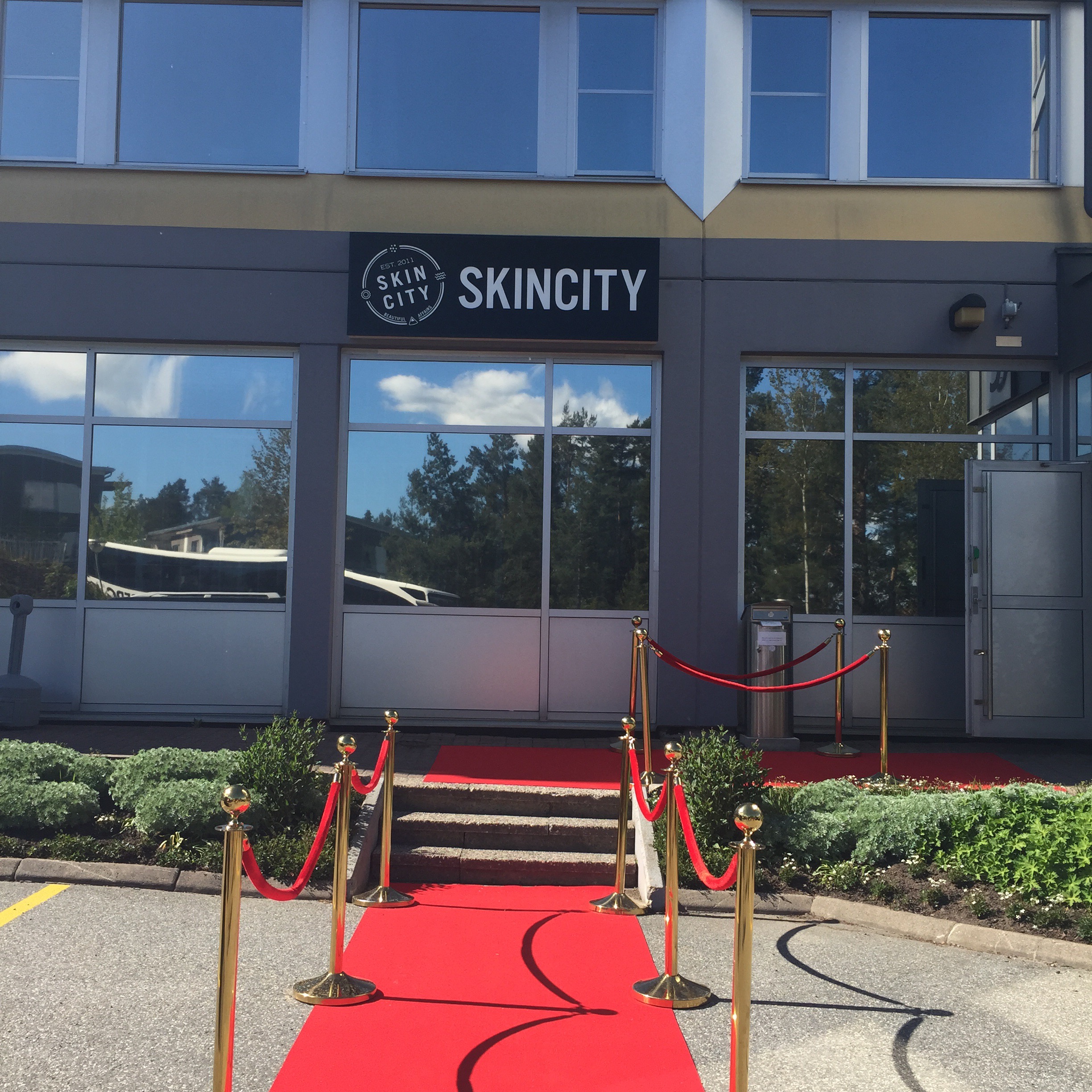 Vi blev upplockade av skincitys special buss från Centralstation ut till deras lokaler i Täby.
