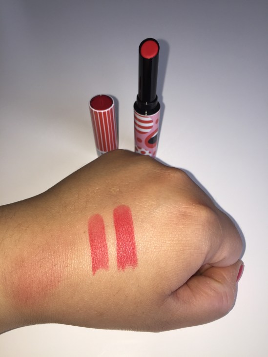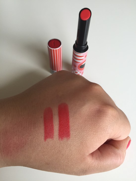 Det finns totalt 3 läppstift i denna kollektion. De är alla matta men så färgrika. En chockrosa, orange och denna röda som heter West end swirl.