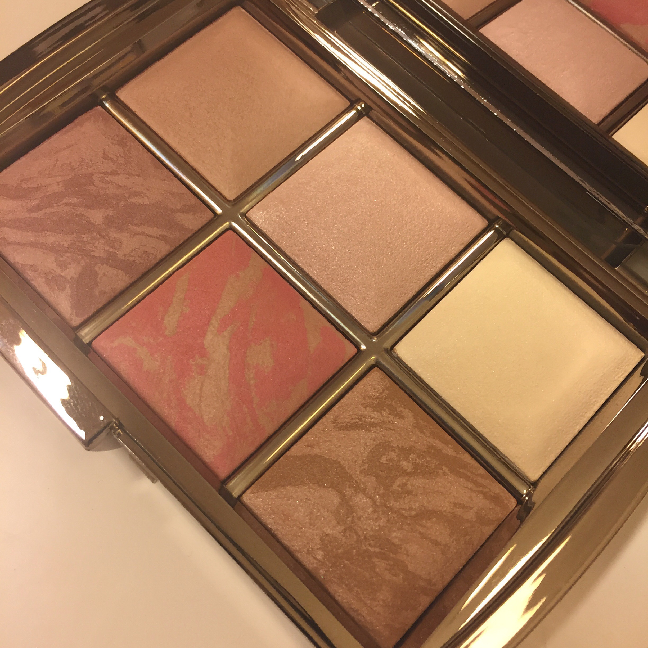 För mig som bara hört massa bra om Hourglass puder men själv inte vågat testa så var denna palett perfekt infart till märket. Varför har jag inte testat då kanske du frågar, ja för att meningar som ”lit from within” och ”brings a radiant on the face” skrämmer mig. Då tänker jag genast Hej Diskokula. Jag som redan har rätt mycket glans behöver inte skina mera.