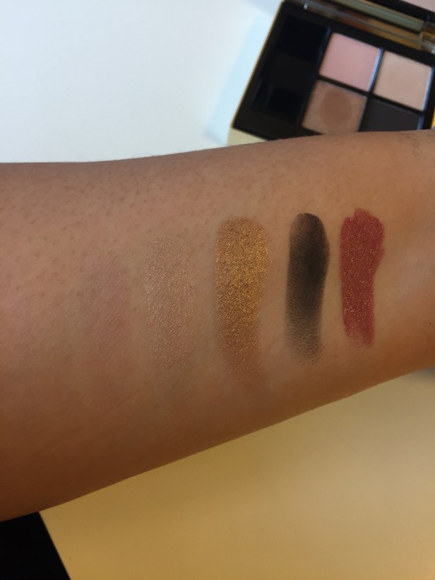 Denna kommer med fyra ögonskuggor och ett litet läppstift.