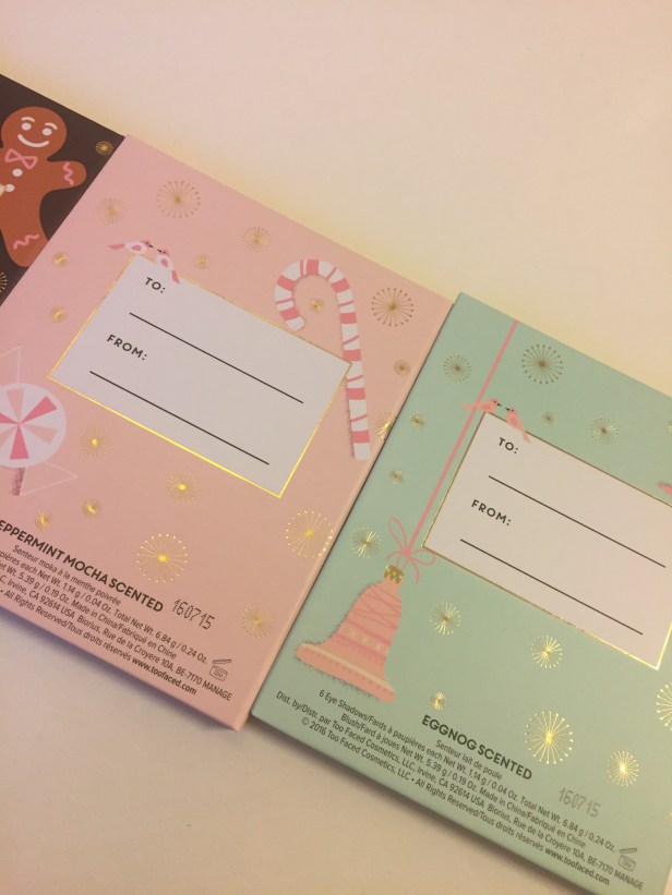 Ja de doftar lite men inte alls lika mycket som deras tidigare chocolate paletter. Den paletten som doftade mest var Eggnog och de andra kände jag knappt av någon doft.