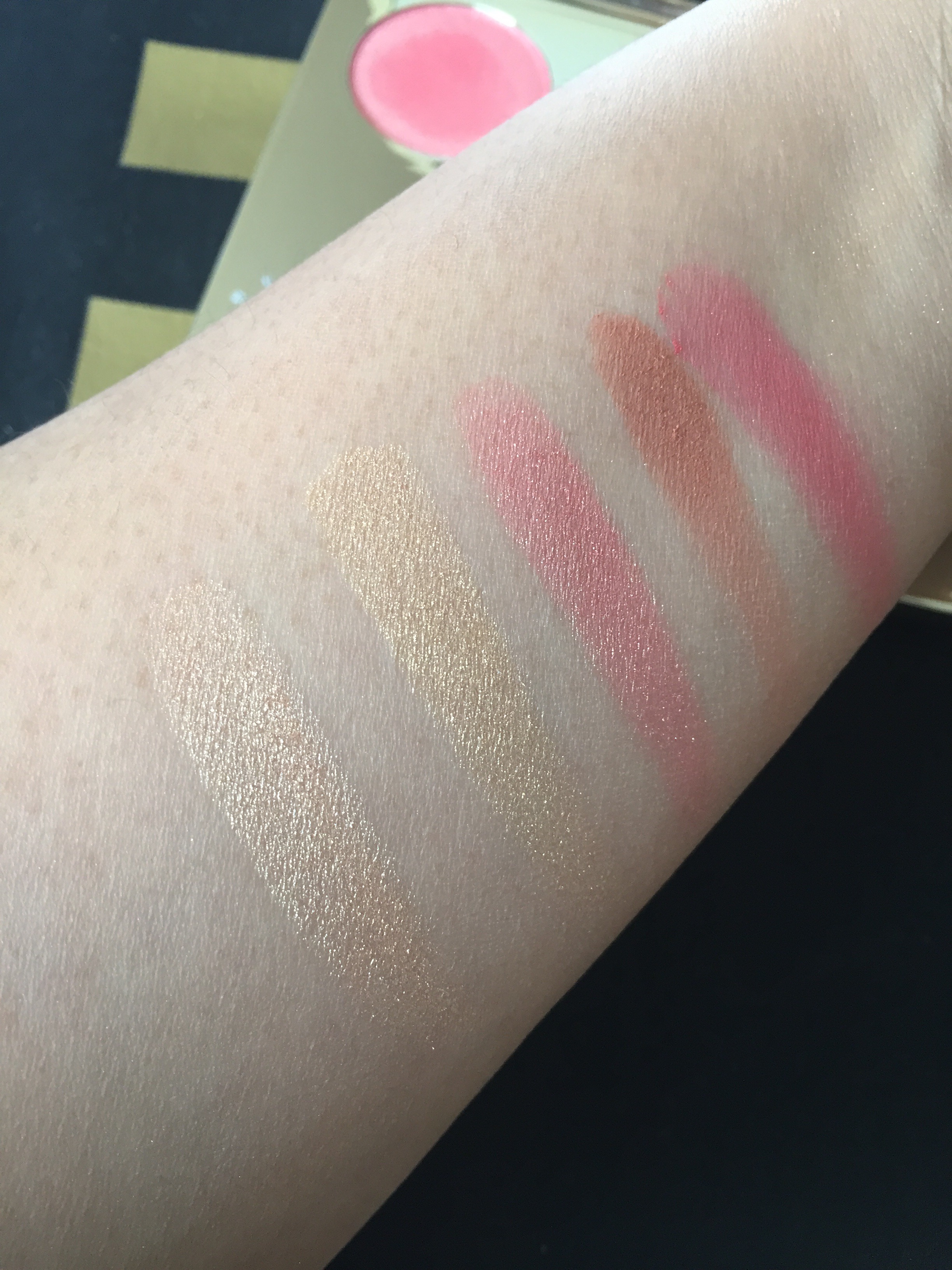 Paletten består av två highlighter Champagne pop och Prosecco Pop och 3 blushers: Amaretto (mineral blush), Pampelmousse (mineral blush) och Rose Spritz (luminous blush). Än så länge är det bara Champagne pop man kan köpa separat.