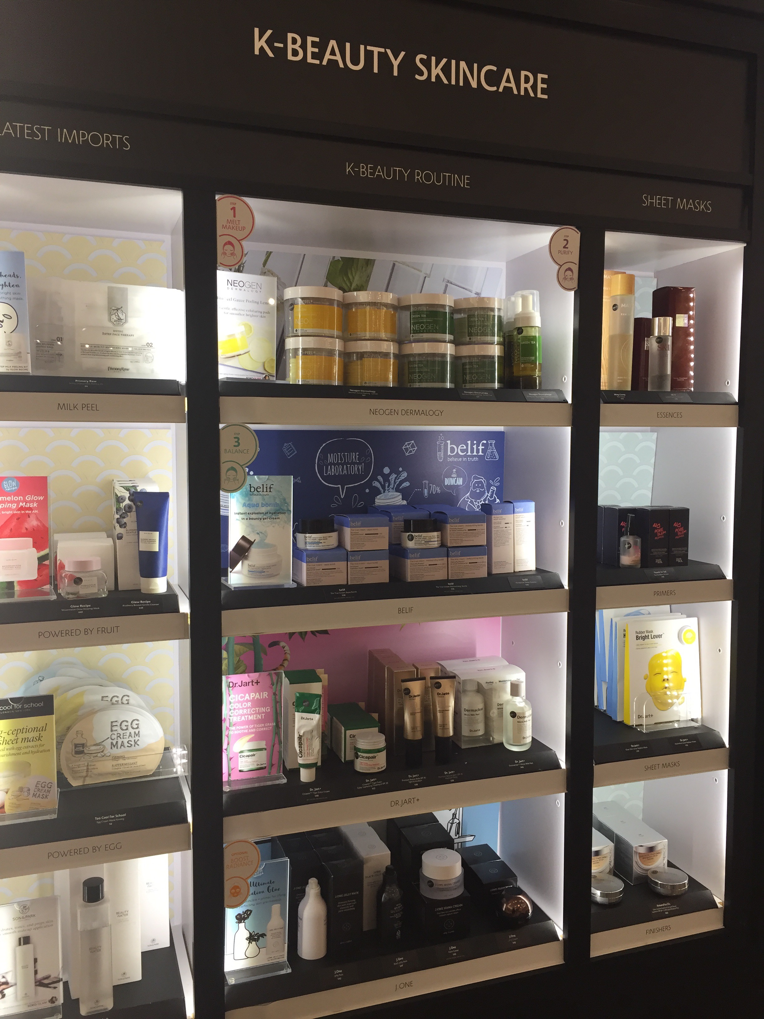 De har även en Kbeauty hylla med kända koreanska produkter som Belif, Dr Jart, Too cool for school, J.one med flera. De har även cleanser och sleepmask som tjejerna från Glow recipie har tagit fram.