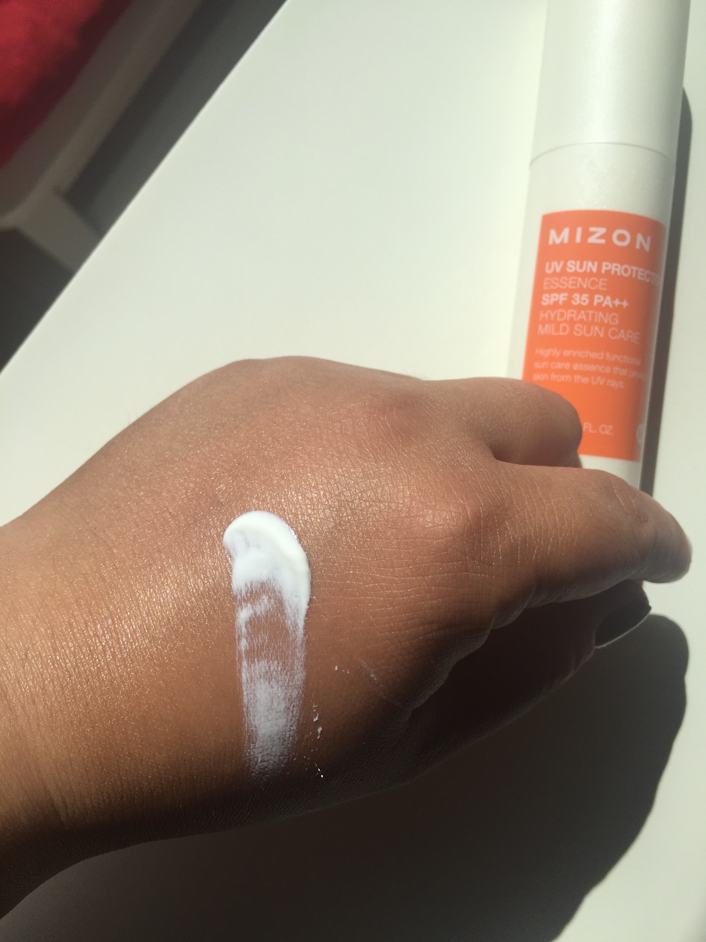 Mizon UV sun protector essence innehåller bland annat Niacinamide som hämmar pigment produktionen och hjälper huden att läka ex om man har acne. Adenosine som är anti wrinkle och peptider som stimulerar produktionen av kollagen och elastin som ökar hudens spänst och hyaluron syra som binder fukt.